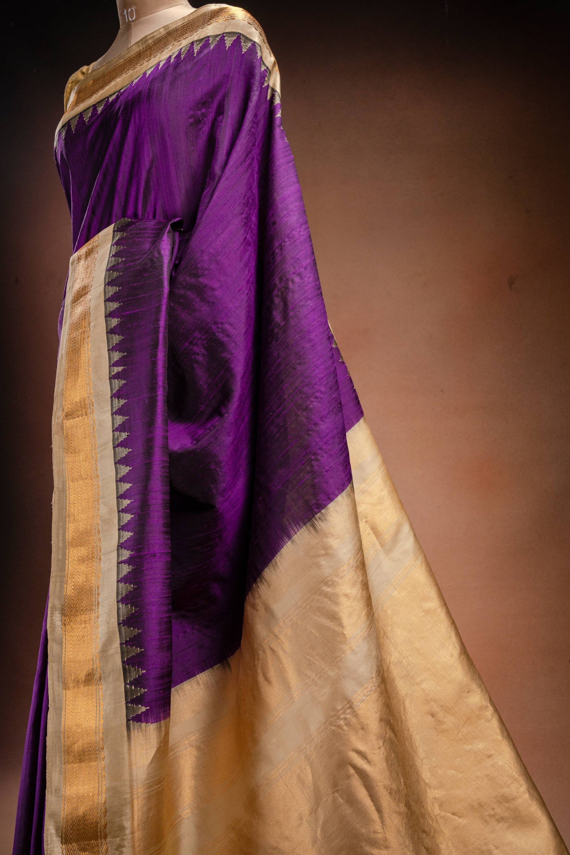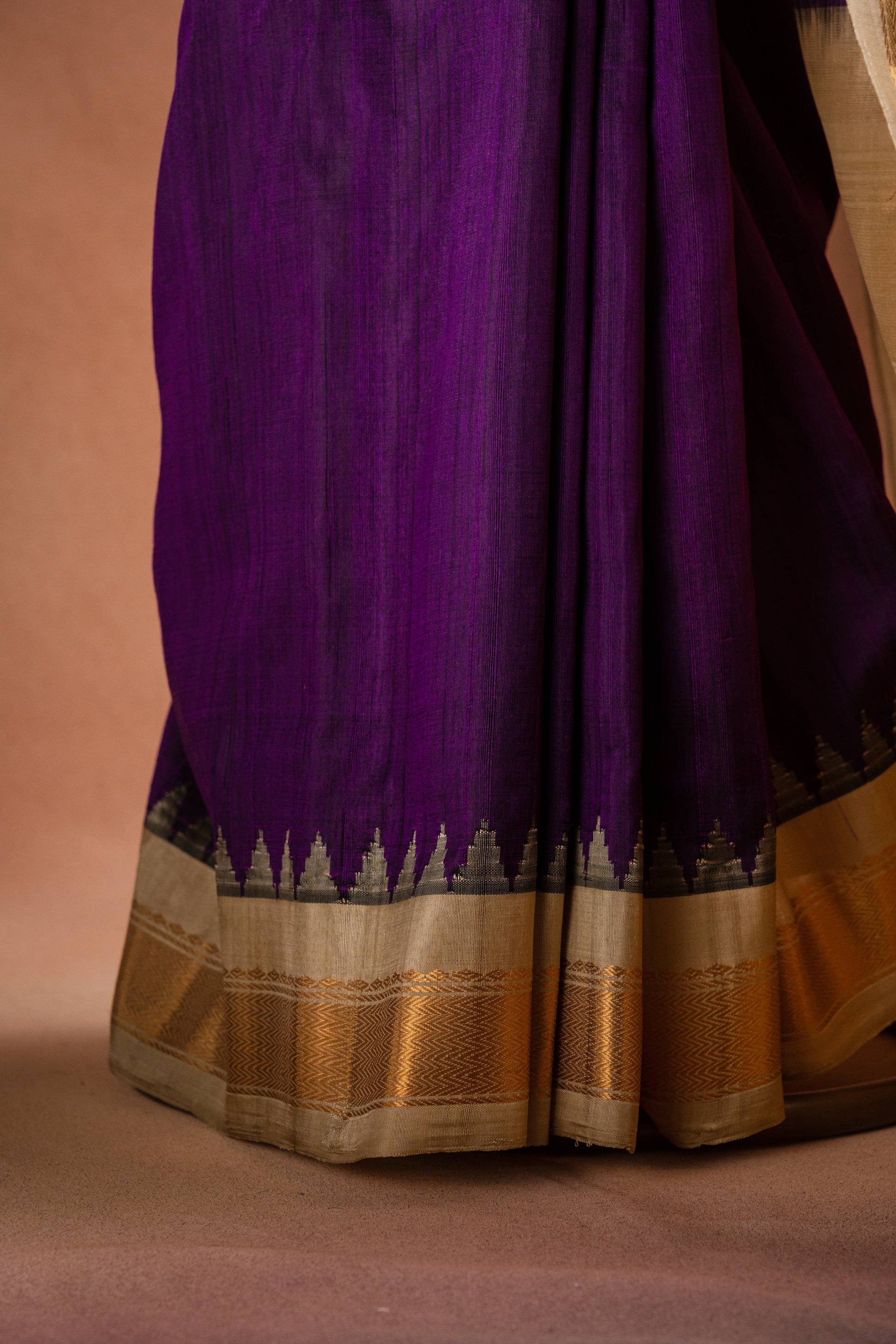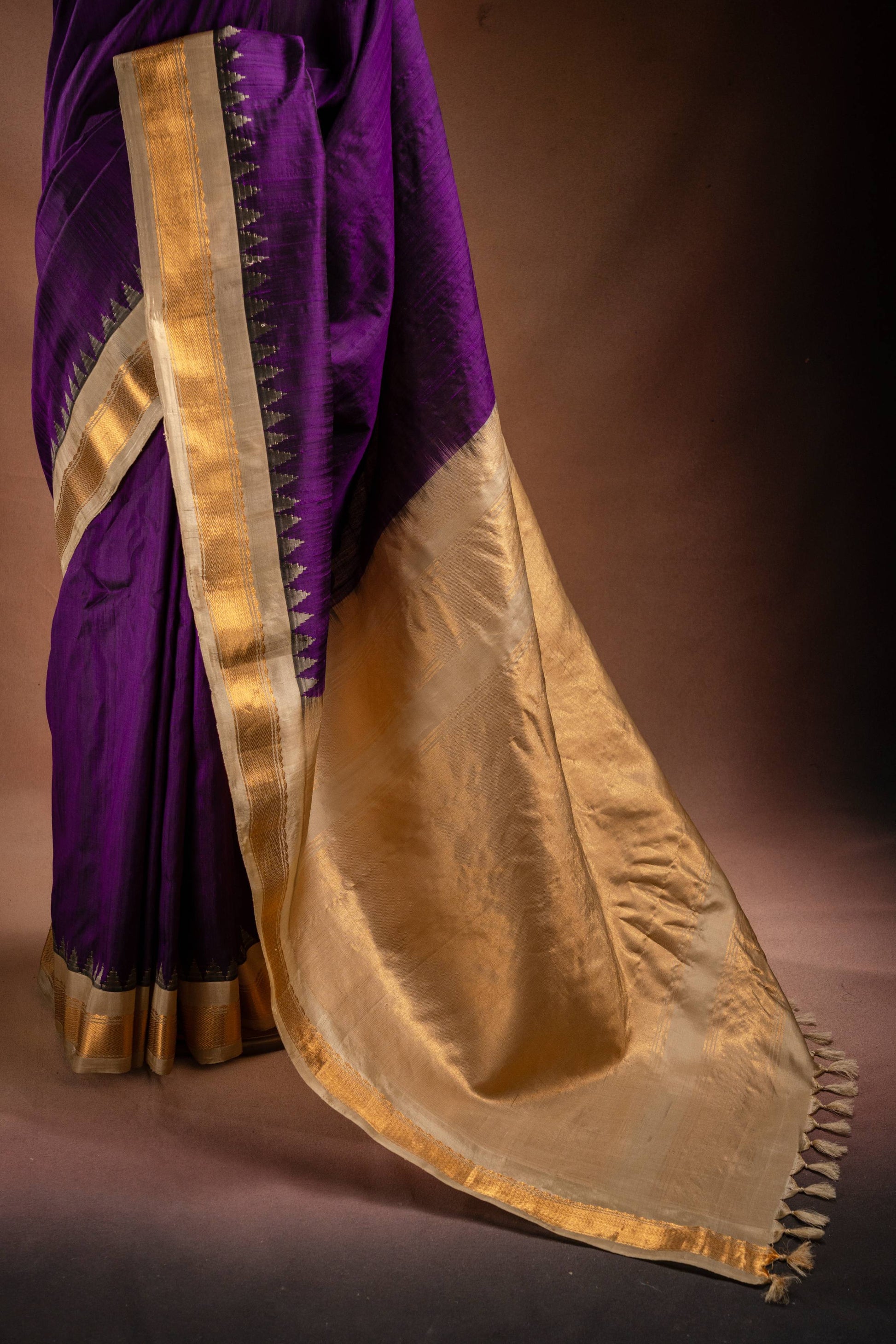 Royal purple Gadwal silk saree finished with a rich golden border.