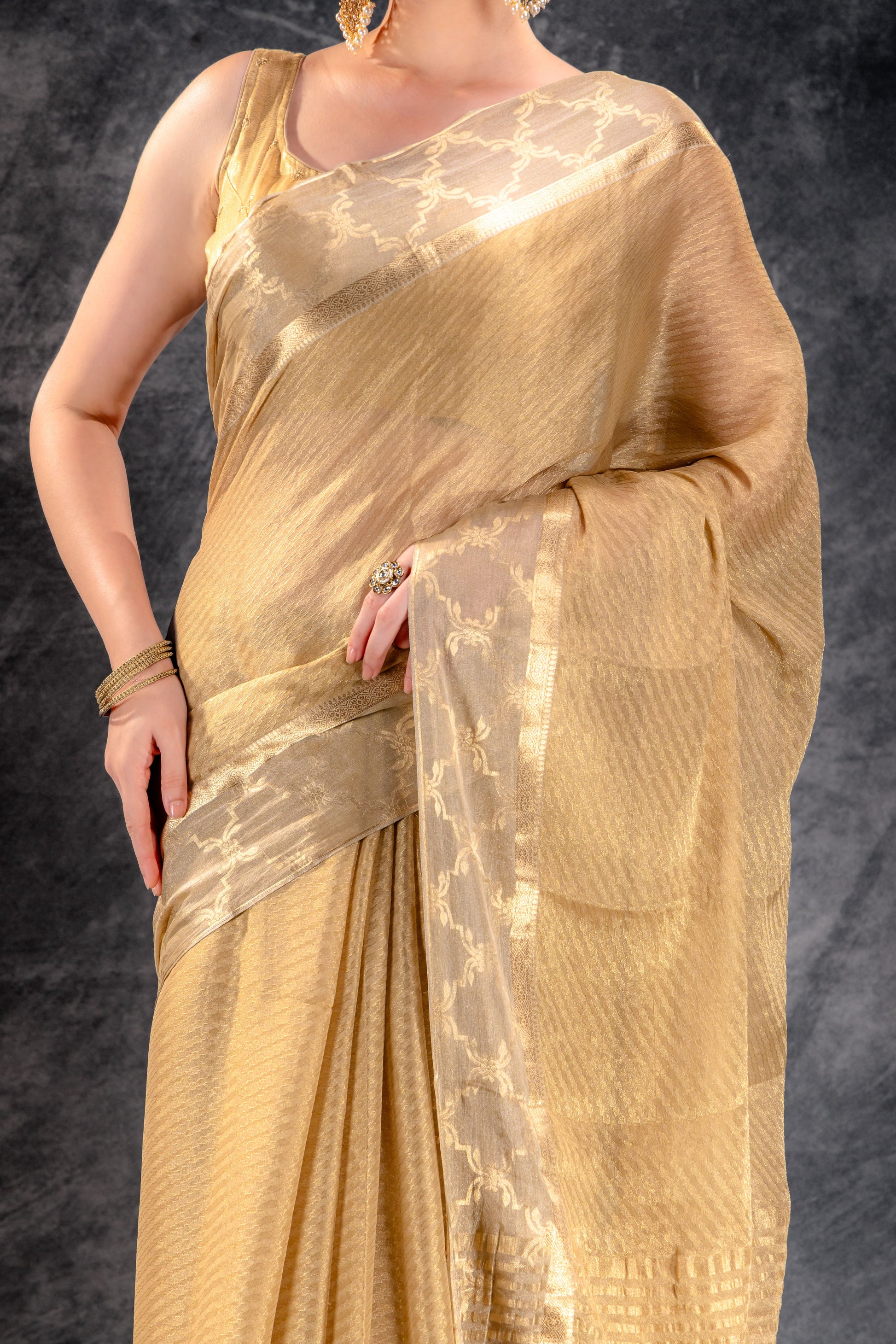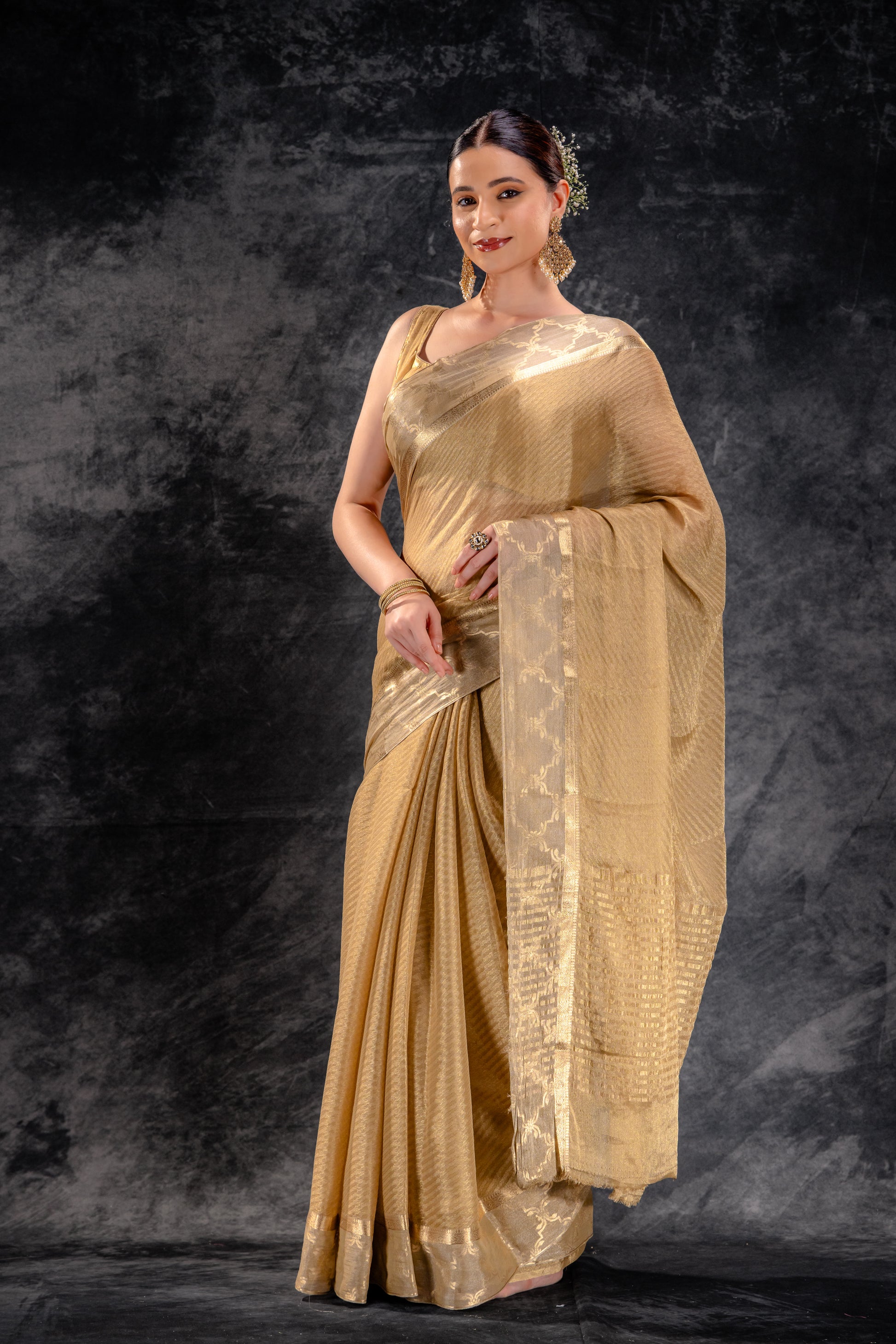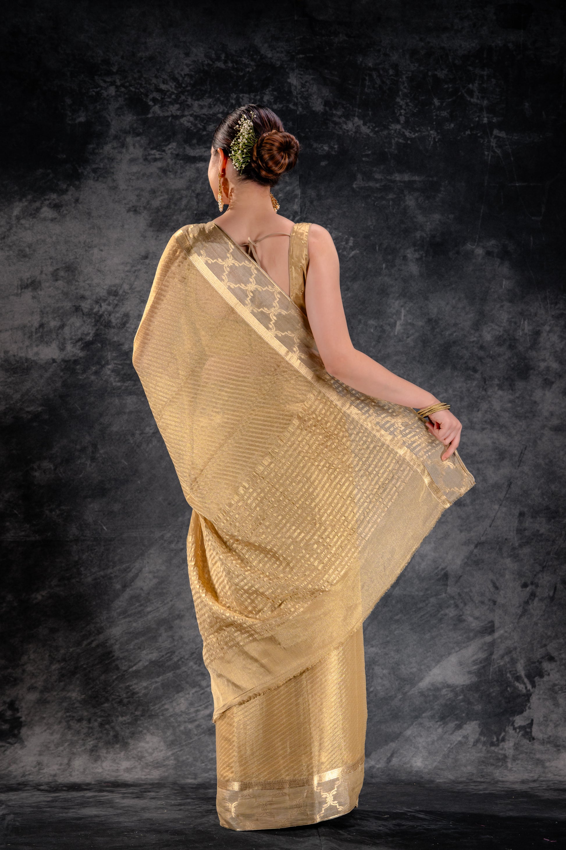 Beige Gold Tissue Saree with Zari Jaal Weave and Ornate Border